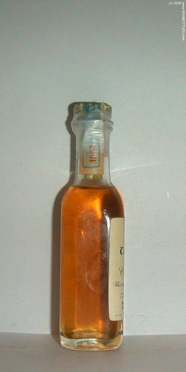 | Seagram's Crown Royal Blended CW (1962) | | Manufacturer: | Seagram | City / State: Country: Continent: | Waterloo / Ontario Canada (CA) America |  | Age On Label: Alcohol: Content: | Unknown 40.00 % Vol. 5.00 cl | Bottle Style: Import: Whisk(e)y: | clear/round/- Original CW - Canadian Whisky