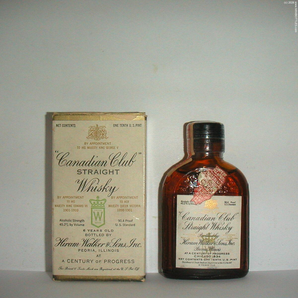 | Canadian Club Blended CW | | Manufacturer: | Walker Dist. | City / State: Country: Continent: | Walkerville / Ontario Canada (CA) America |  | Age On Label: Alcohol: Content: | 6 years 43.00 % Vol. 4.00 cl | Bottle Style: Import: Whisk(e)y: | brown/round/- Import (US) CW - Canadian Whisky