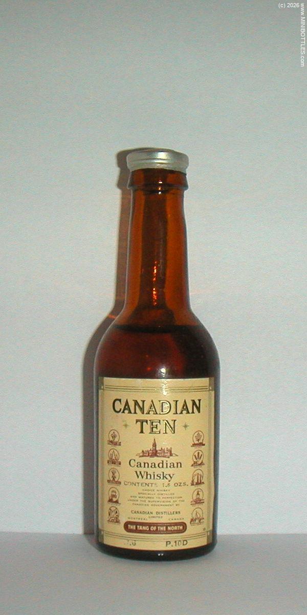 | Canadian Ten CW | | Manufacturer: | Canadian Dist. | City / State: Country: Continent: | Montreal / Ontario Canada (CA) America |  | Age On Label: Alcohol: Content: | Unknown Unknown 4.00 cl | Bottle Style: Import: Whisk(e)y: | brown/round/- Original CW - Canadian Whisky