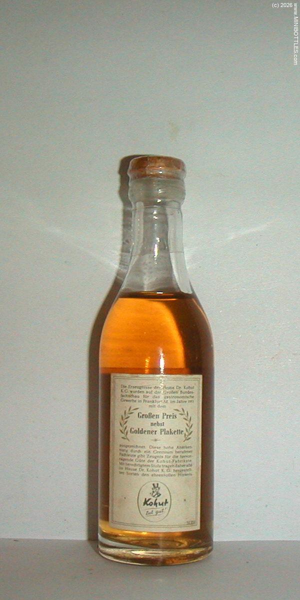 | Kohut Whisky | | Manufacturer: | Dr. Kohut KG | City / State: Country: Continent: | Langen / Hessen Germany (DE) Europe |  | Age On Label: Alcohol: Content: | Unknown 43.00 % Vol. 4.00 cl | Bottle Style: Import: Whisk(e)y: | clear/round/- Original Whisky