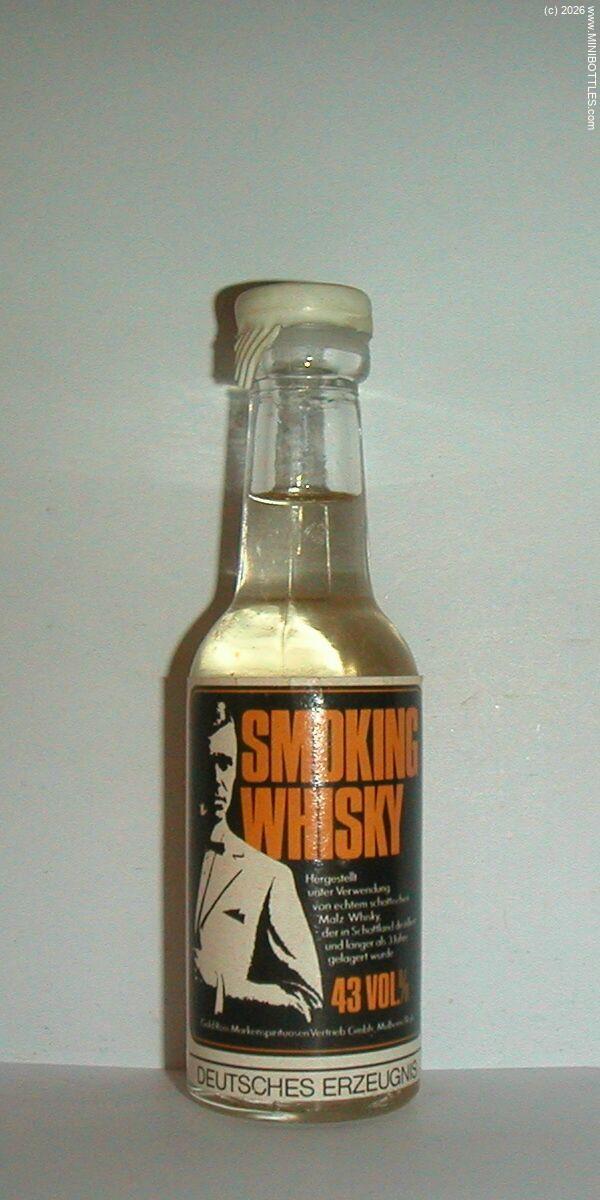 | Smoking Whisky | | Manufacturer: | Gold Ross | City / State: Country: Continent: | Muelheim / - Germany (DE) Europe |  | Age On Label: Alcohol: Content: | 3 years 43.00 % Vol. 5.00 cl | Bottle Style: Import: Whisk(e)y: | clear/round/- Original Whisky