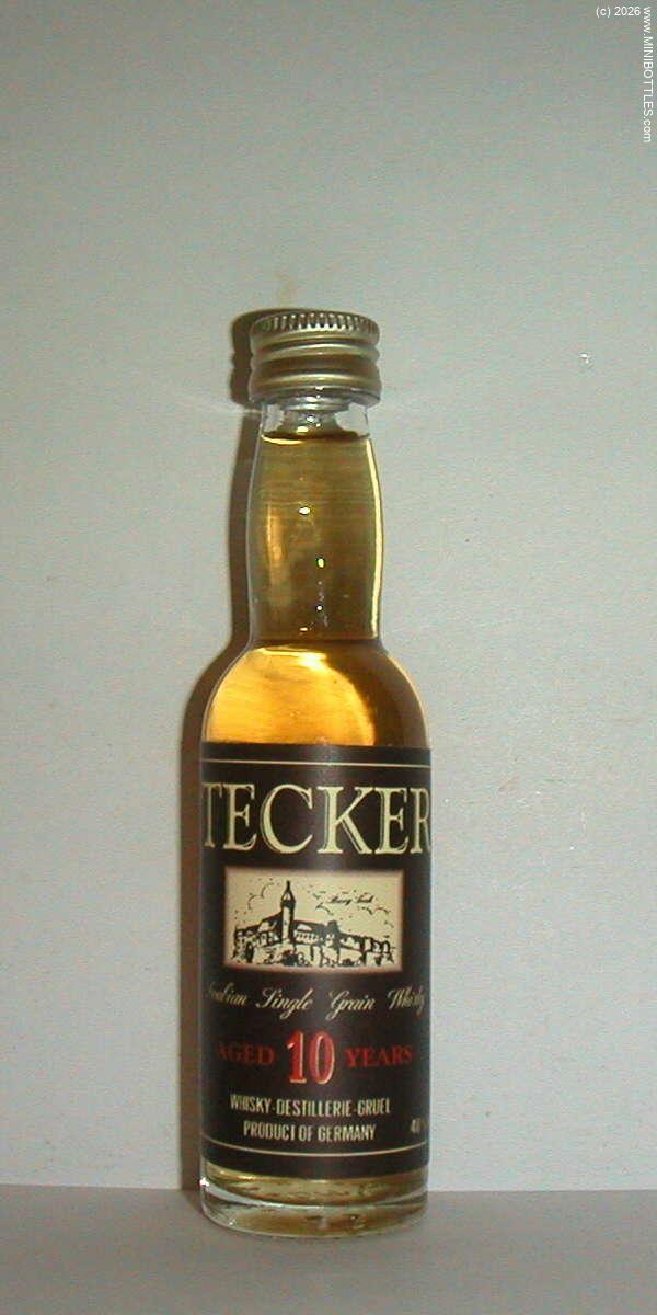 | Tecker Swabian Single Grain Whisky | | Manufacturer: | Gruel's Dist. | City / State: Country: Continent: | Owen / Baden-Wuerttemberg Germany (DE) Europe |  | Age On Label: Alcohol: Content: | 10 years 40.00 % Vol. 4.00 cl | Bottle Style: Import: Whisk(e)y: | clear/round/- Original Whisky