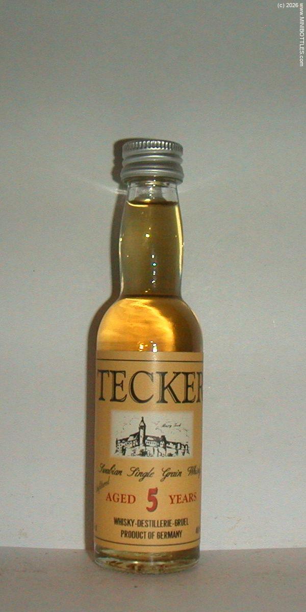 | Tecker Swabian Single Grain Whisky | | Manufacturer: | Gruel's Dist. | City / State: Country: Continent: | Owen / Baden-Wuerttemberg Germany (DE) Europe |  | Age On Label: Alcohol: Content: | 5 years 40.00 % Vol. 4.00 cl | Bottle Style: Import: Whisk(e)y: | clear/round/- Original Whisky