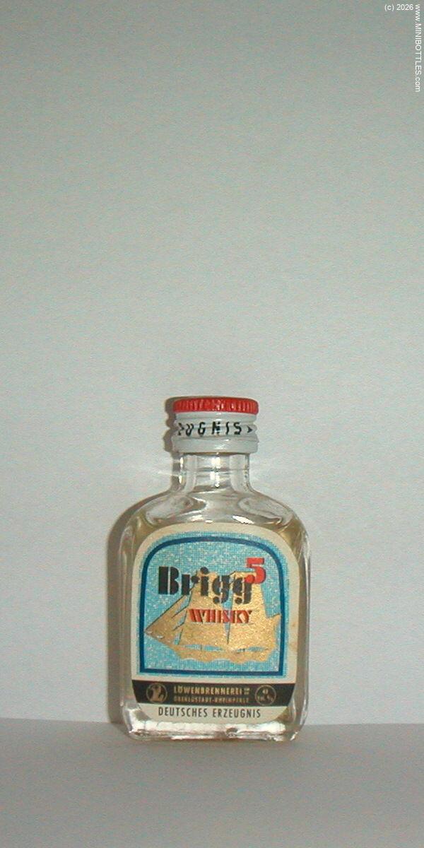 | Brigg 5 Whisky | | Manufacturer: | Loewenbrennerei | City / State: Country: Continent: | Oberlustadt / - Germany (DE) Europe |  | Age On Label: Alcohol: Content: | Unknown 40.00 % Vol. 2.00 cl | Bottle Style: Import: Whisk(e)y: | clear/flat/- Original Whisky