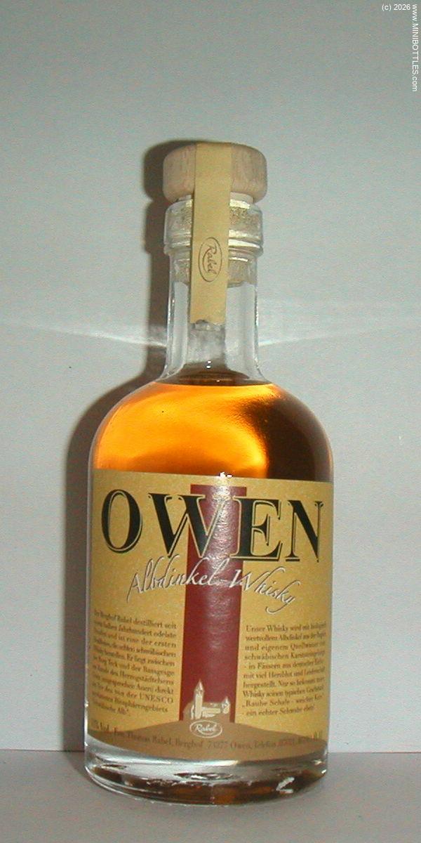 | Owen Albdinkel Whisky | | Manufacturer: | Thomas Rabel | City / State: Country: Continent: | Owen / Baden-Wuerttemberg Germany (DE) Europe |  | Age On Label: Alcohol: Content: | Unknown 43.00 % Vol. 10.00 cl | Bottle Style: Import: Whisk(e)y: | clear/round/- Original Whisky
