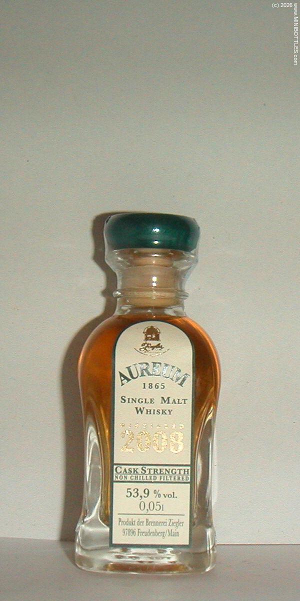 | Aureum SM Scotch Whisky | | Manufacturer: | Brennerei Ziegler | City / State: Country: Continent: | Freudenberg / - Germany (DE) Europe |  | Age On Label: Alcohol: Content: | 7 years 53.00 % Vol. 5.00 cl | Bottle Style: Import: Whisk(e)y: | clear/quadrangular/- Original SMSW - Single Malt Scotch Whisky