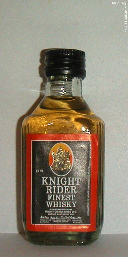| Knight Rider Finest Whisky | | Manufacturer: | Mount Dist. | City / State: Country: Continent: | - / Sikkim India (IN) Asia |  | Age On Label: Alcohol: Content: | Unknown 42.00 % Vol. 5.00 cl | Bottle Style: Import: Whisk(e)y: | clear/flat/- Original Whisky