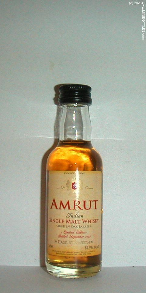 | Amrut Cask Strenght SM Whisky | | Manufacturer: | Amrut Dist. | City / State: Country: Continent: | Kambipura / - India (IN) Asia |  | Age On Label: Alcohol: Content: | Unknown 61.00 % Vol. 5.00 cl | Bottle Style: Import: Whisk(e)y: | clear/round/- Original SMW - Single Malt Whisky