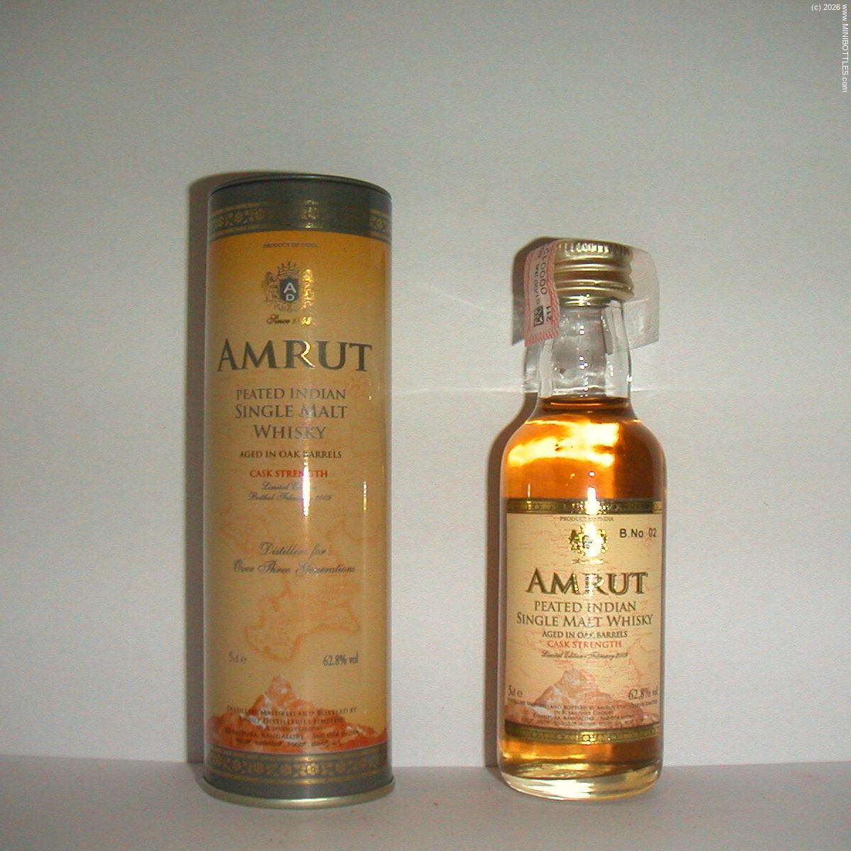 | Amrut Peated Indian Single Malt Whisky Cask Strength (2009) | | Manufacturer: | Amrut Dist. | City / State: Country: Continent: | Bangalore / - India (IN) Asia |  | Age On Label: Alcohol: Content: | Unknown 62.00 % Vol. 5.00 cl | Bottle Style: Import: Whisk(e)y: | clear/round/Tube Original SMW - Single Malt Whisky