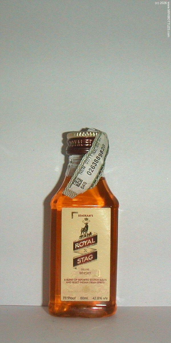 | Seagram's Royal Stag DeLuxe Whisky | | Manufacturer: | Pernod Ricard India | City / State: Country: Continent: | Bangalore / - India (IN) Asia |  | Age On Label: Alcohol: Content: | Unknown 42.00 % Vol. 6.00 cl | Bottle Style: Import: Whisk(e)y: | clear/other/PET Original Whisky