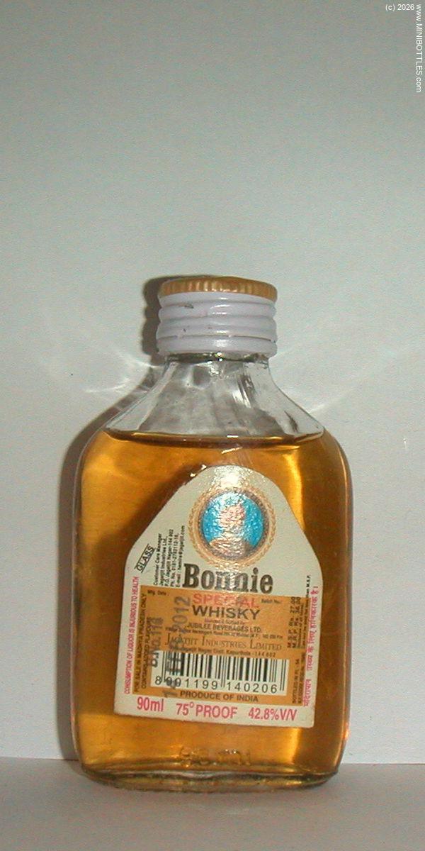 | Bonnie Special Whisky | | Manufacturer: | Jubilee Beverage Ltd. | City / State: Country: Continent: | Bhopal / - India (IN) Asia |  | Age On Label: Alcohol: Content: | Unknown 42.00 % Vol. 9.00 cl | Bottle Style: Import: Whisk(e)y: | clear/flat/- Original Whisky