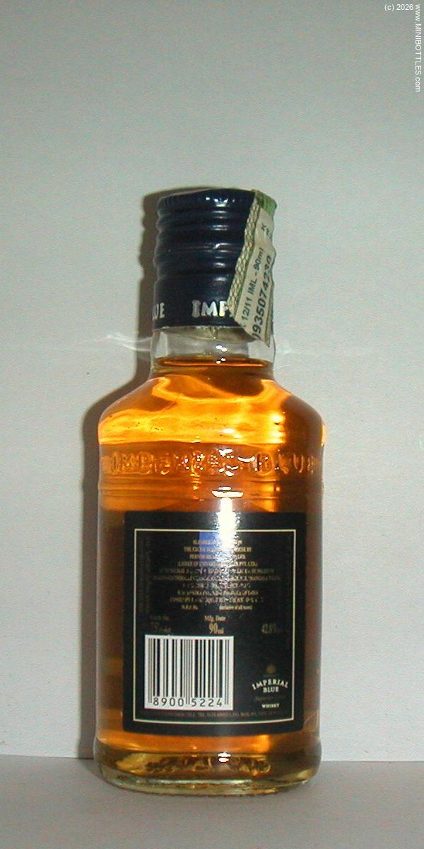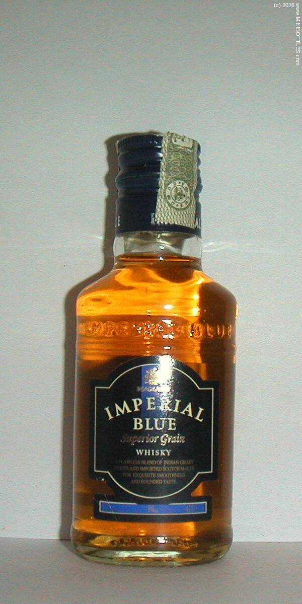 | Seagram's Imperial Blue Superiour Grain Whisky | | Manufacturer: | Pernod Ricard India | City / State: Country: Continent: | New Delhi / - India (IN) Asia |  | Age On Label: Alcohol: Content: | Unknown 42.00 % Vol. 9.00 cl | Bottle Style: Import: Whisk(e)y: | clear/flat/- Original Whisky