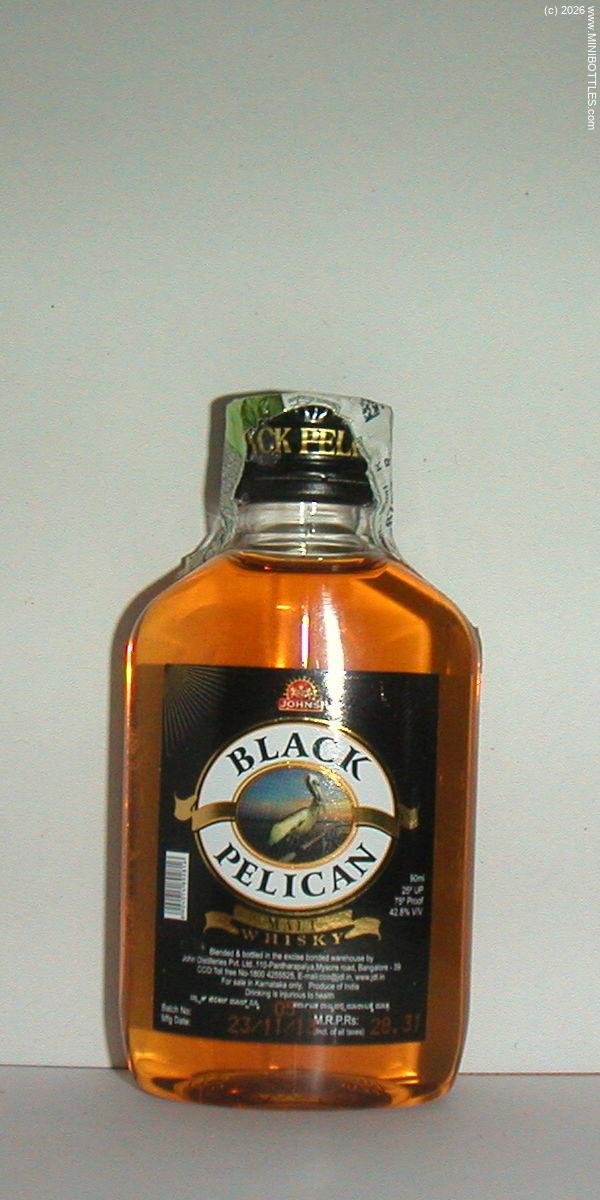 | John's Black Pelican Malt Whisky | | Manufacturer: | John Dist. Pvt. Ltd. | City / State: Country: Continent: | Bangalore / - India (IN) Asia |  | Age On Label: Alcohol: Content: | Unknown 42.00 % Vol. 9.00 cl | Bottle Style: Import: Whisk(e)y: | clear/flat/PET Original MW - Malt Whisky
