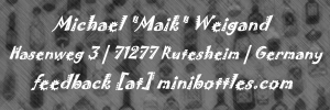 Diese Web-Seiten sind für Sammler von Miniaturflaschen gedacht, nicht für Alkohol-Konsumenten.